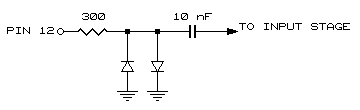 The A111 has an internal input protection network, including a coupling capacitor, as shown below. However, it is not possible to fully protect against high voltage discharge through the input.
