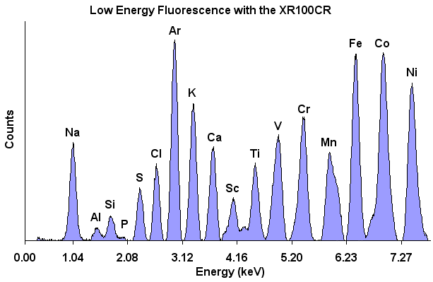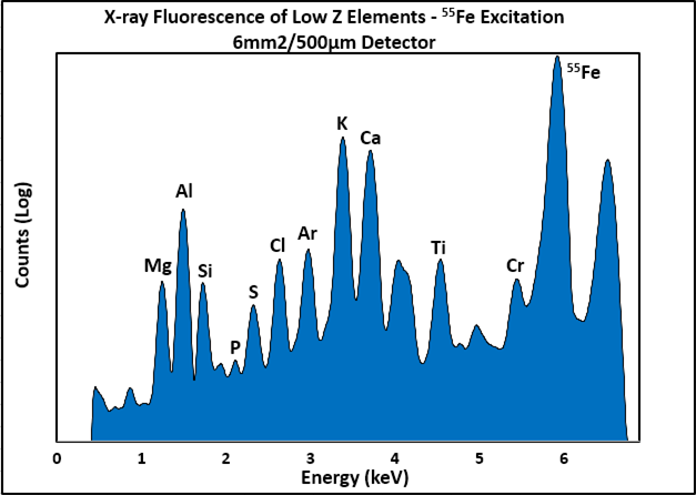 Figure 26. Low (Z) element x-ray fluorescence (XRF) with 6 mm2/500 µm detector.