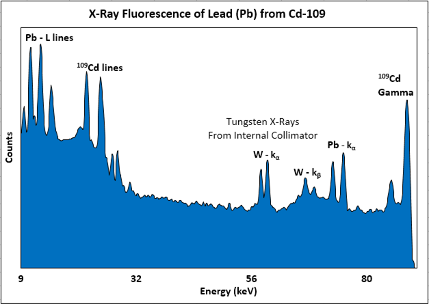 Figure 11. X-Ray Fluorescence (XRF) of lead (Pb) from 109Cd.