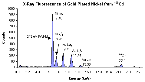 Figure 25. X-ray fluorescence (XRF) of multi-element sample from109Cd.