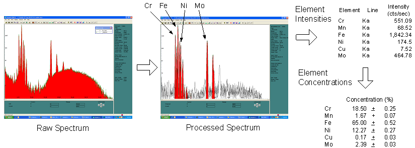 There are three major steps to an XRF analysis, after the system has been setup and calibrated and the spectrum measured:
