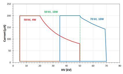 Maximum HV: Mini-X2 X-ray Tube is available with an HV range of either 10 to 50 kV or 35 to 70 kV.
