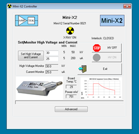 There is a single Mini-X2 Controller which interfaces with all the Mini-X2 X-ray Tube modules. Each Controller is programmed, at Amptek, for a specific X-ray Tube module, with its P/N, S/N, maximum kV, maximum power, etc. Amptek’s Firmware Manager software can be used to reconfigure the Controller for a different tube.